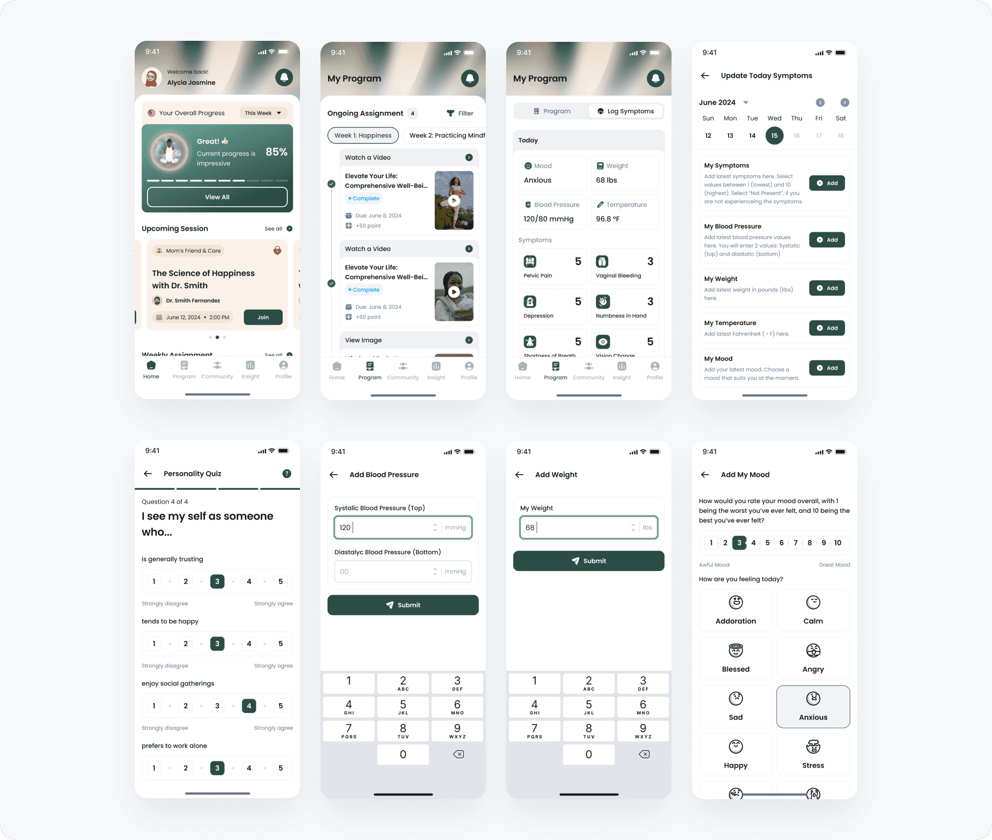 The AI analyzes the personality quiz completed by each mother to recommend weekly programs tailored to her specific goals. Daily, mothers can review symptom logs and add new symptom data, enabling the AI to monitor health and mood. This information may also serve as a valuable record for healthcare providers in the future.