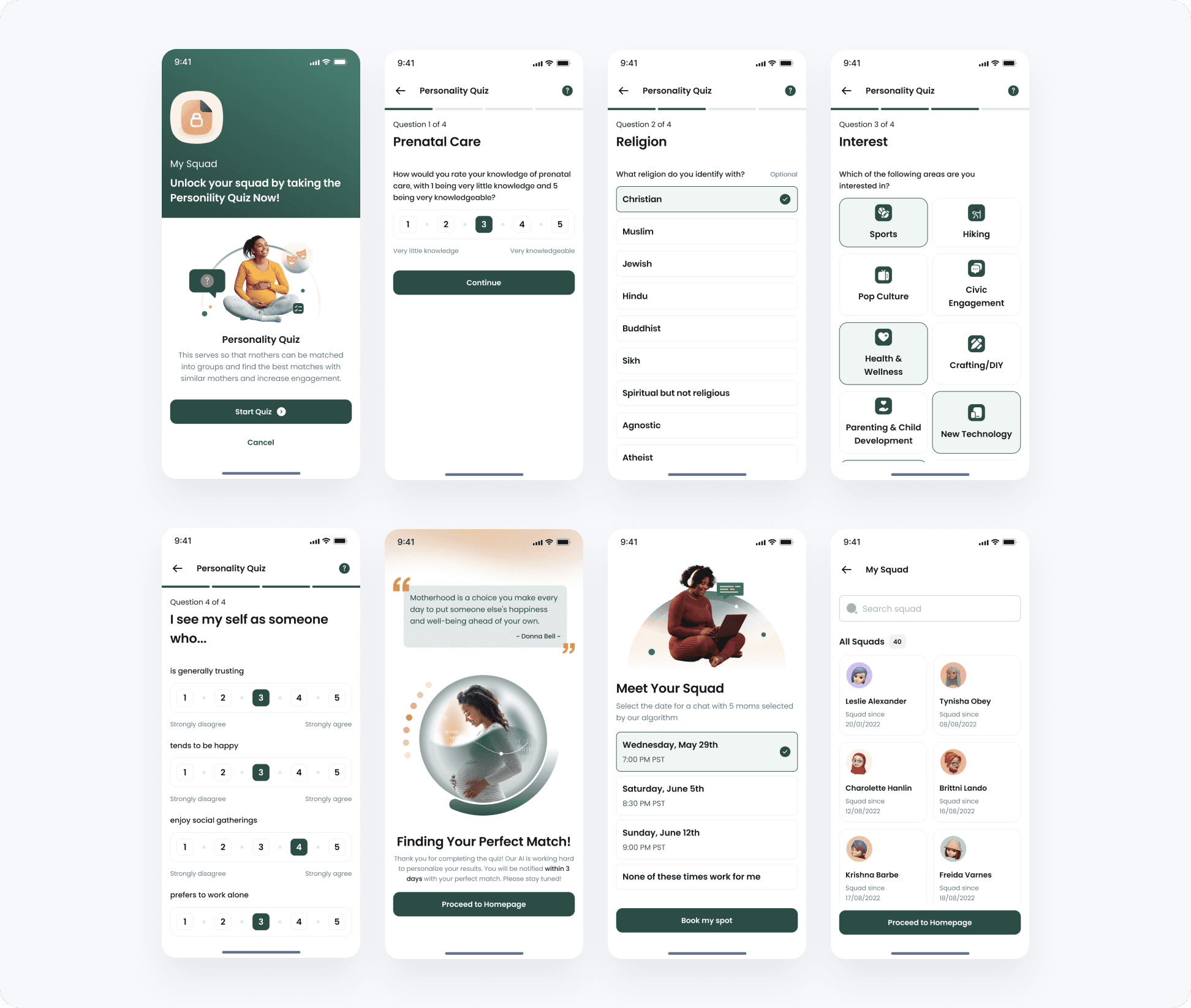 An AI-driven maternal health platform enhances mental and social support for pregnant and postpartum women, aiming for culturally inclusive precision medicine. It features a unique peer-to-peer matching algorithm and personalized activities tailored to parents' needs.